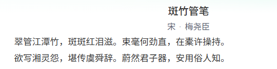 换用诗名《斑竹管笔》进行检索,只能找到宋朝诗人梅尧臣的一首五言律诗。 两模两样。