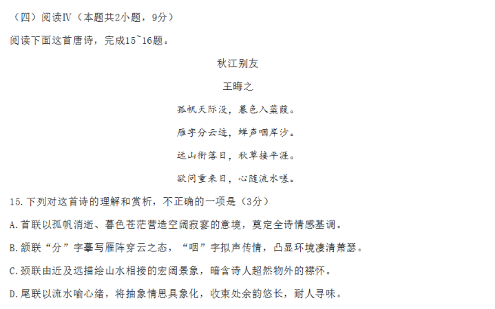 我又去查了一下,这事还不是孤例。 今年春天,湖北省有一场七市州高三联考,语文试卷中也出现了疑似AI创作的伪唐诗。 作者王晦之,诗名《秋江别友》。